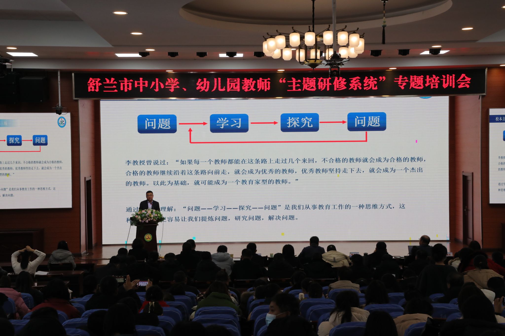 为深入推进校本主题研修工作,指导舒兰市中小学科学构建学校、研修组和教师三级主题研修系统,促进教师专业发展,12月16日,我校与舒兰市教育局在舒兰市教师进修学校共同组织开展“主题研修系统”专题培训会。舒兰市教师进修学校全体教研员,全市中小学(幼儿园)、特教学校全体领导干部和教师线上线下参加了本次培训。