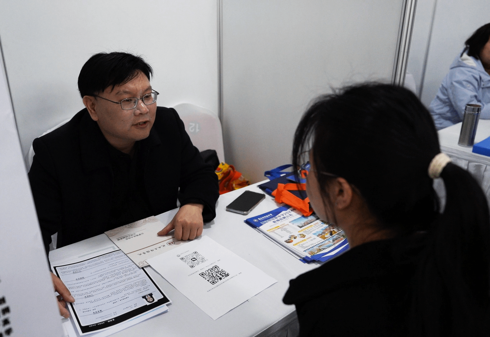 计算机科学与技术学院(软件学院)计算机科学与技术专业2021级学生徐政说:“今年的就业形势很严峻,这是压力更是动力。这次招聘会有很多对口岗位,对我来说是一次非常宝贵的历练。最重要的是近距离了解企业对人才的需求,进一步确立求职方向。”