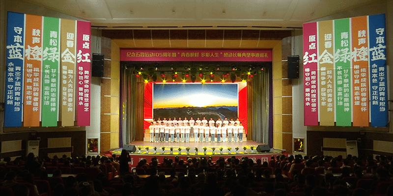 事迹分享结束后,一曲昂扬的《中国青年》唱响礼堂,全场青年与榜样一同歌唱,歌唱风华正茂的激扬青春。