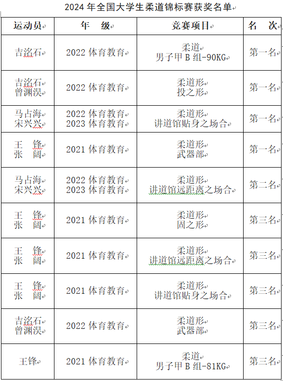 611日,在由中国学生体育联合会主办的2024年全国大学生柔道锦标赛中,我校体育学院体育教育专业6名学生组成的代表队荣获415铜,荣获柔道形团体总分丁组第一名。