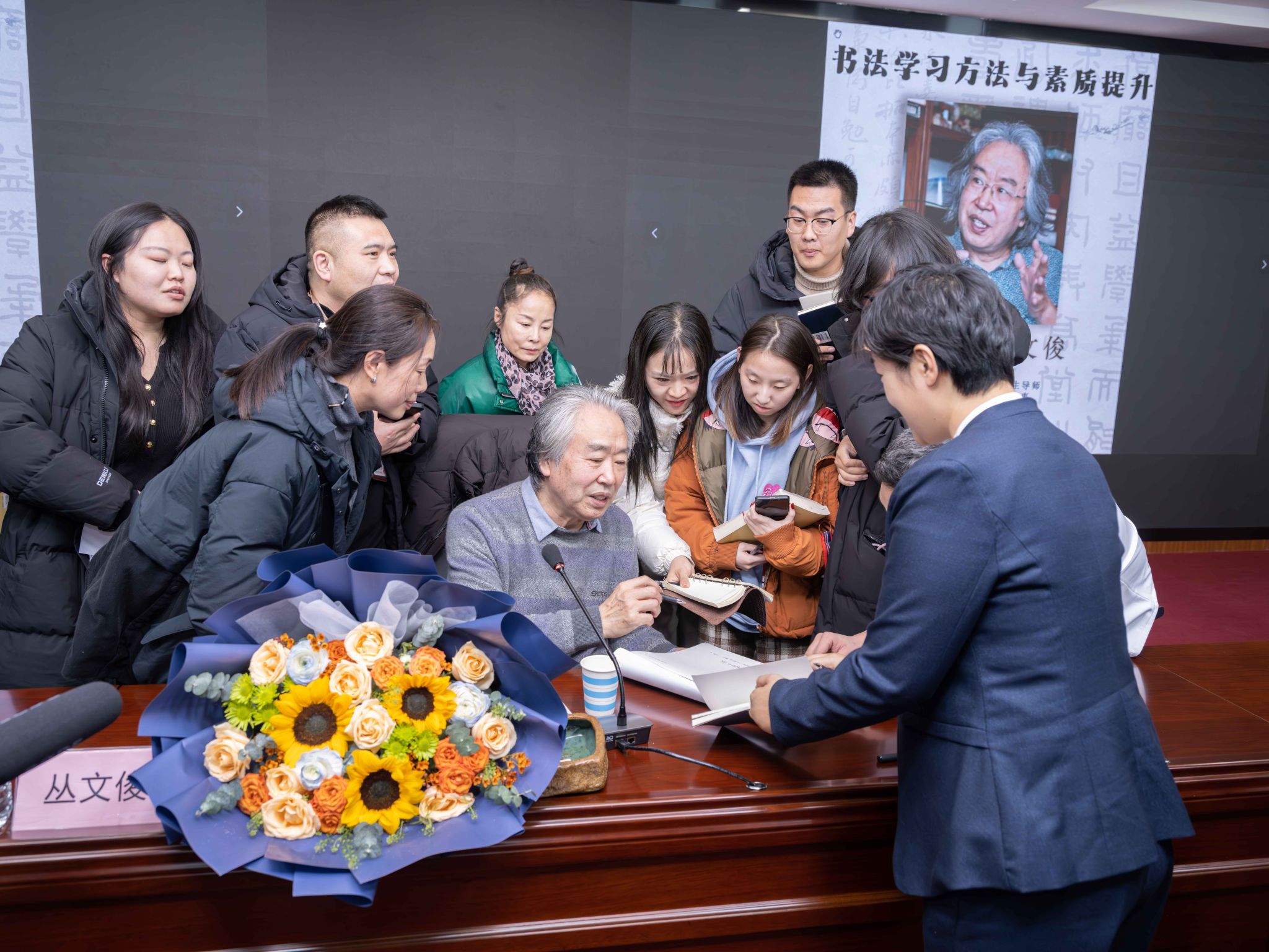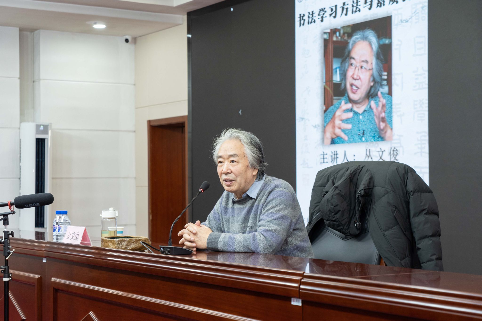 12月12日,著名学者、书法家、吉林大学教授、博士生导师丛文俊先生应邀,在新图书馆报告厅作题为《书法学习方法与素质提升》的专题讲座。党委副书记刘国宁出席会议。
