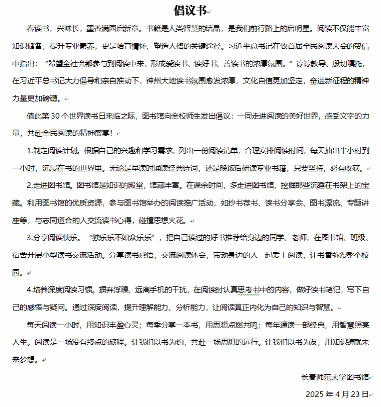 此次读书节启动,为我校阅读新风尚拉开了序幕,图书馆将以此为契机,进一步点燃师生的阅读激情,共绘一幅书香四溢的美好校园画卷。