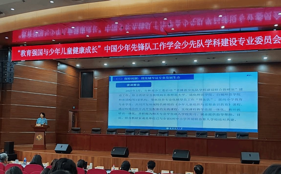 在主旨报告环节,孙中华作题为《教育家精神引领下少先队辅导员核心能力提升路径研究》的专题报告,结合我校少先队学科发展理论与实践成果,以爱的教育为人才培养理念,深入剖析少先队辅导员核心能力构成要素。同时,结合我校在吉林省红领巾学院建设中的引领优势,系统提出提升少先队辅导员核心能力的有效路径。
