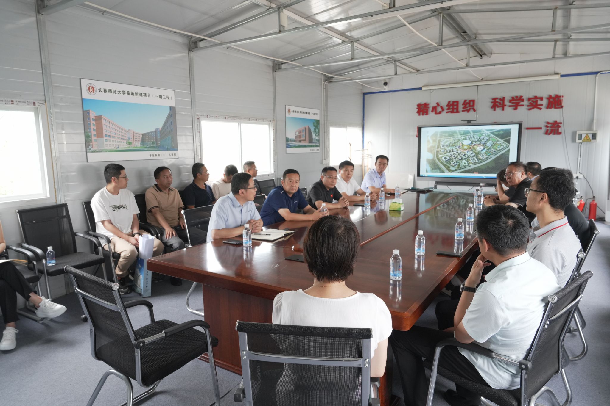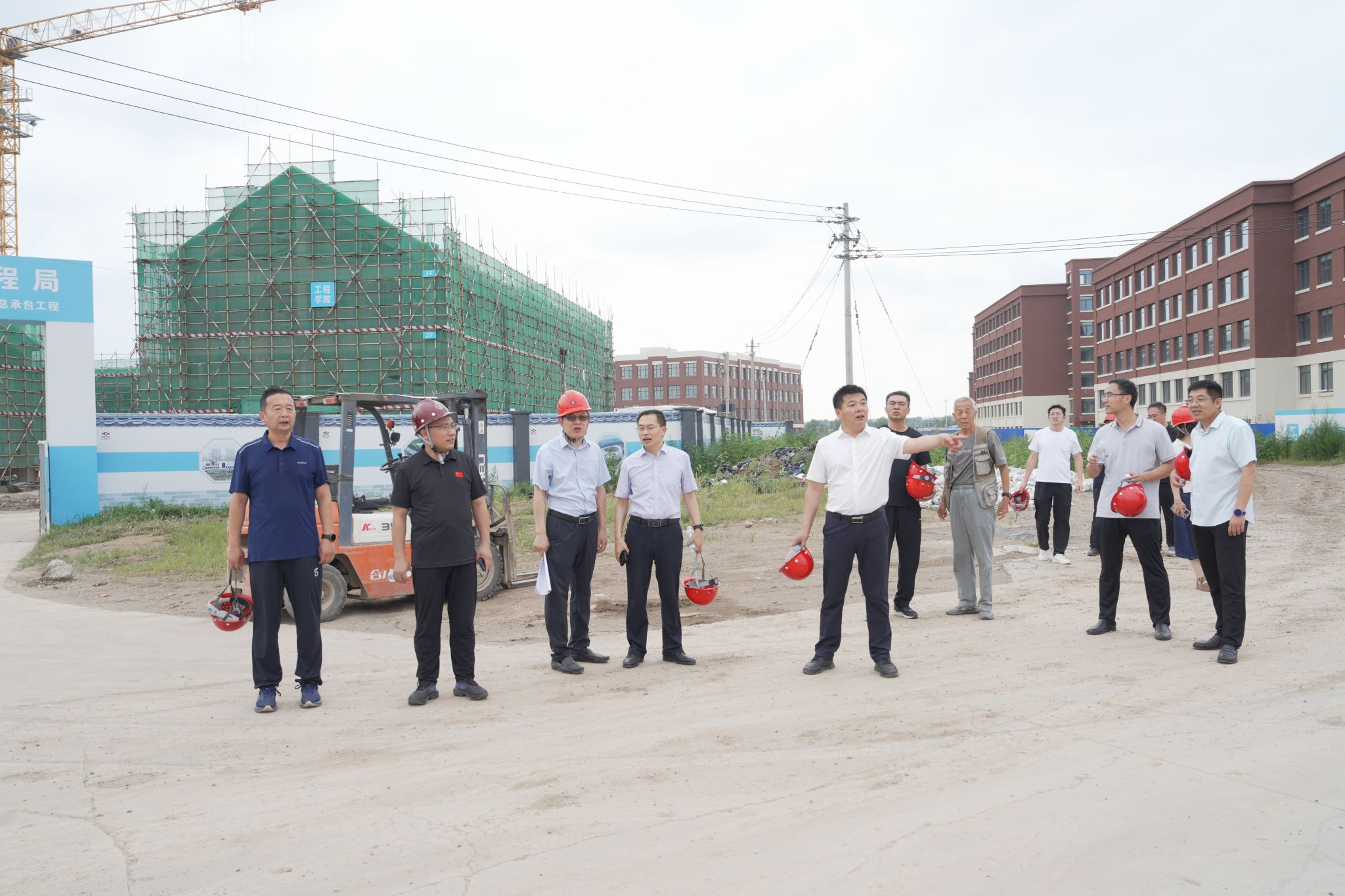 基建处处长、新校区建设办公室常务副主任于龙就目前新校区建设的各项工作进展情况进行汇报。机关党委书记吕立国向新校区建设一线同志赠送了矿泉水等防暑降温生活物资。