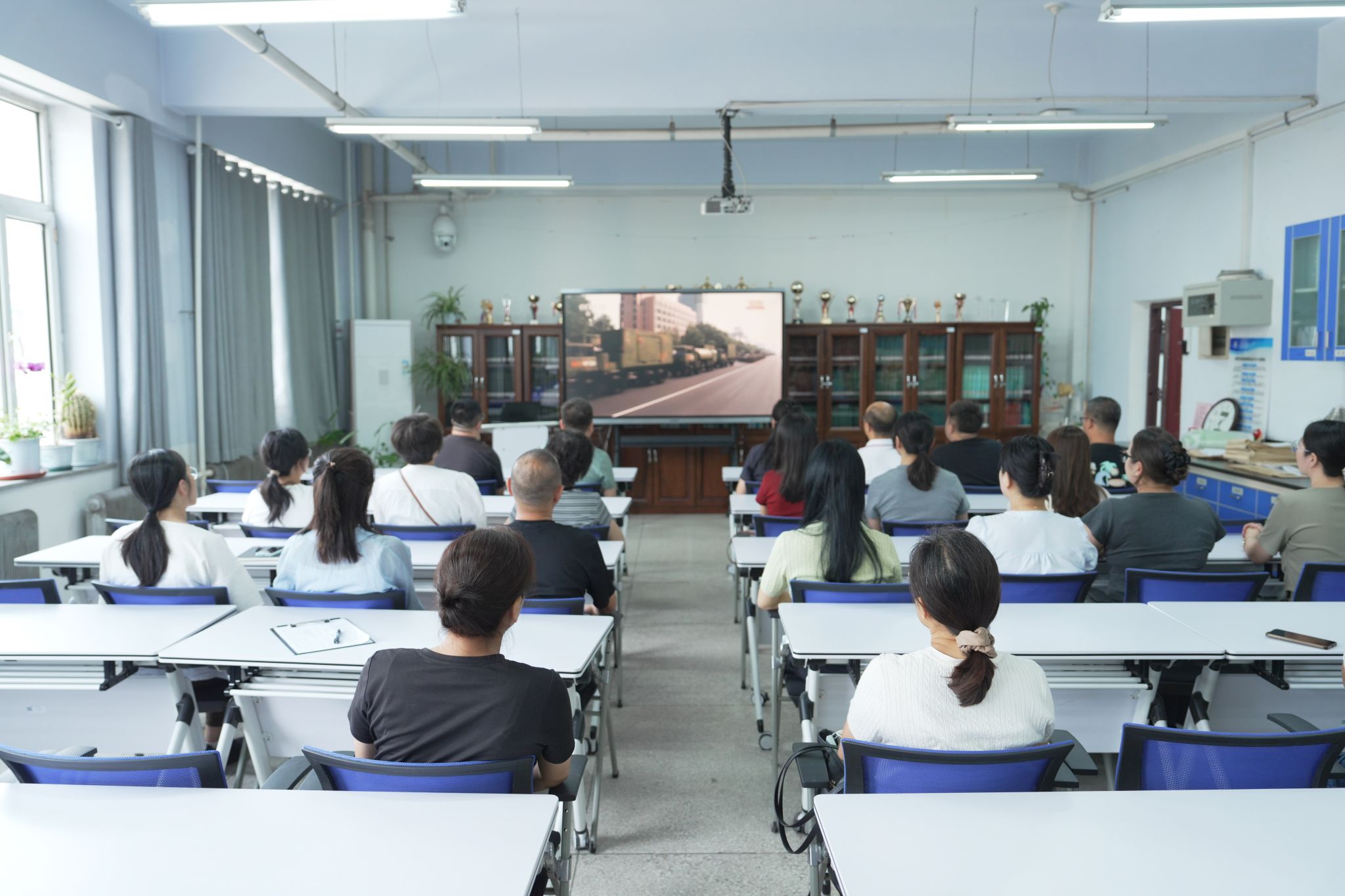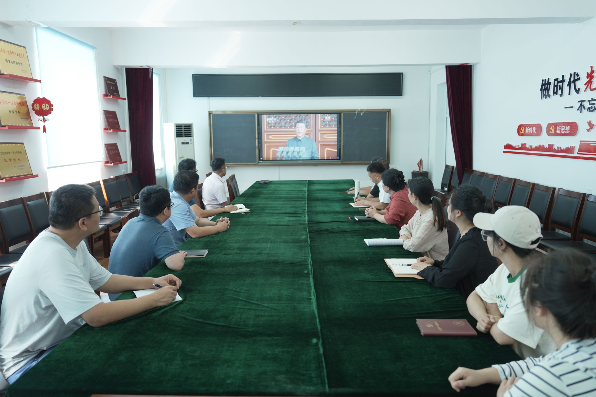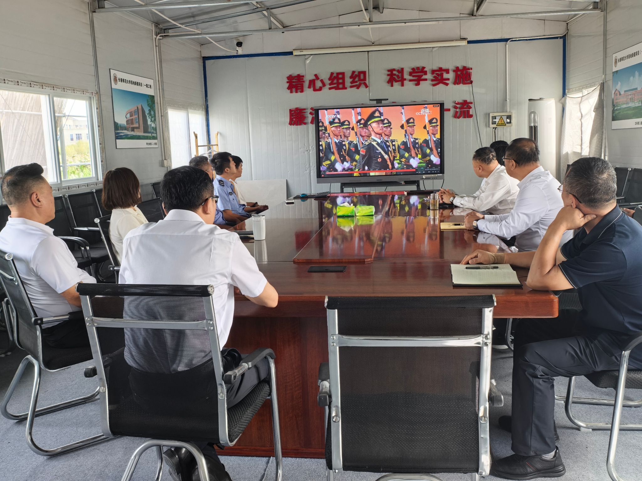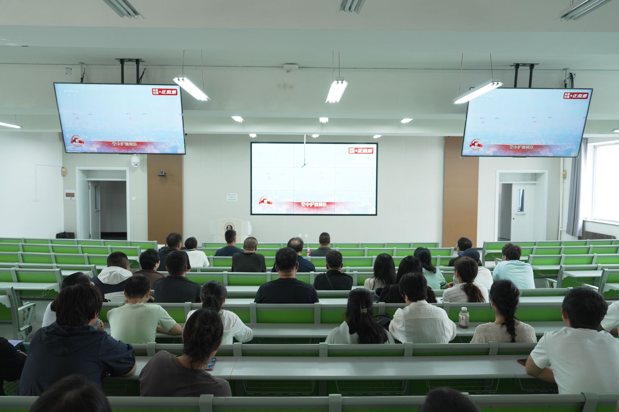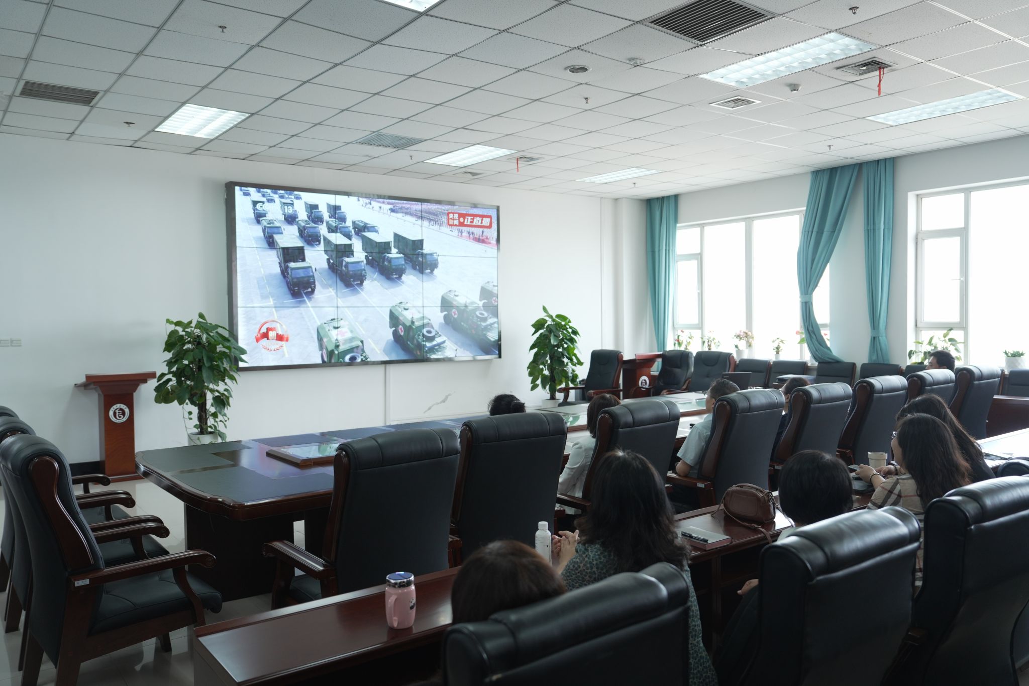 三军列阵,铁甲生辉;战鹰呼啸,壮志凌云。9月3日上午9时,纪念中国人民抗日战争暨世界反法西斯战争胜利80周年大会在北京天安门广场隆重举行。中共中央总书记、国家主席、中央军委主席习近平发表重要讲话。学校领导、两委委员、各职能部门负责人在教学综合楼1101会议室集中观看庆祝大会及阅兵式现场直播;学生工作部、团委组织学生代表在长师会堂集中观看;各学院组织师生员工采取线上线下相结合的方式,第一时间观看大会直播的盛况。