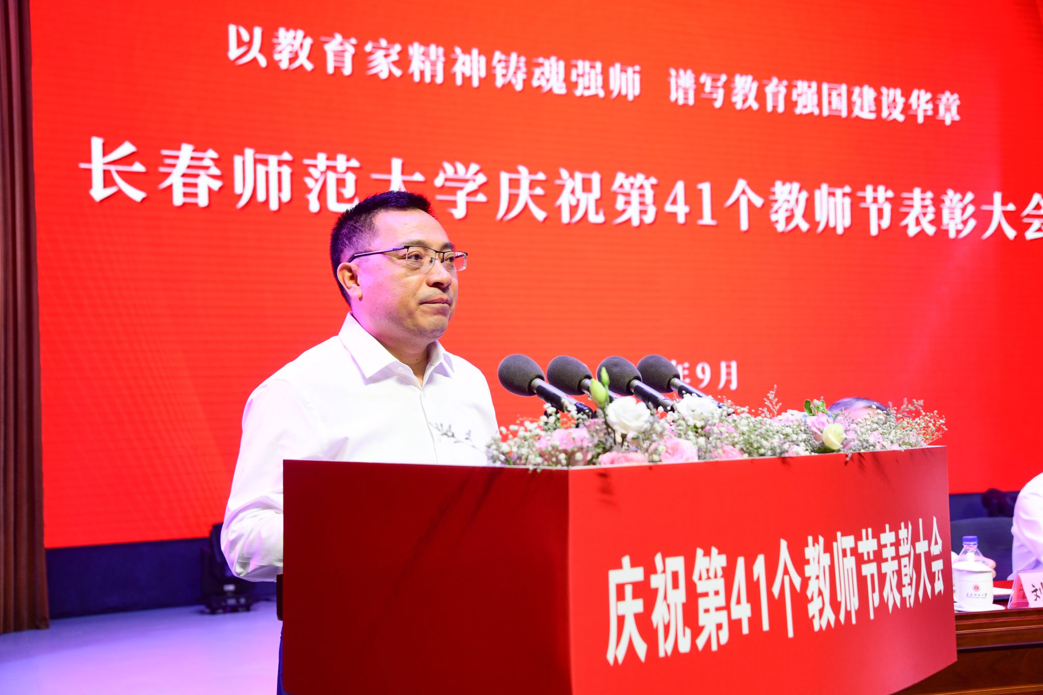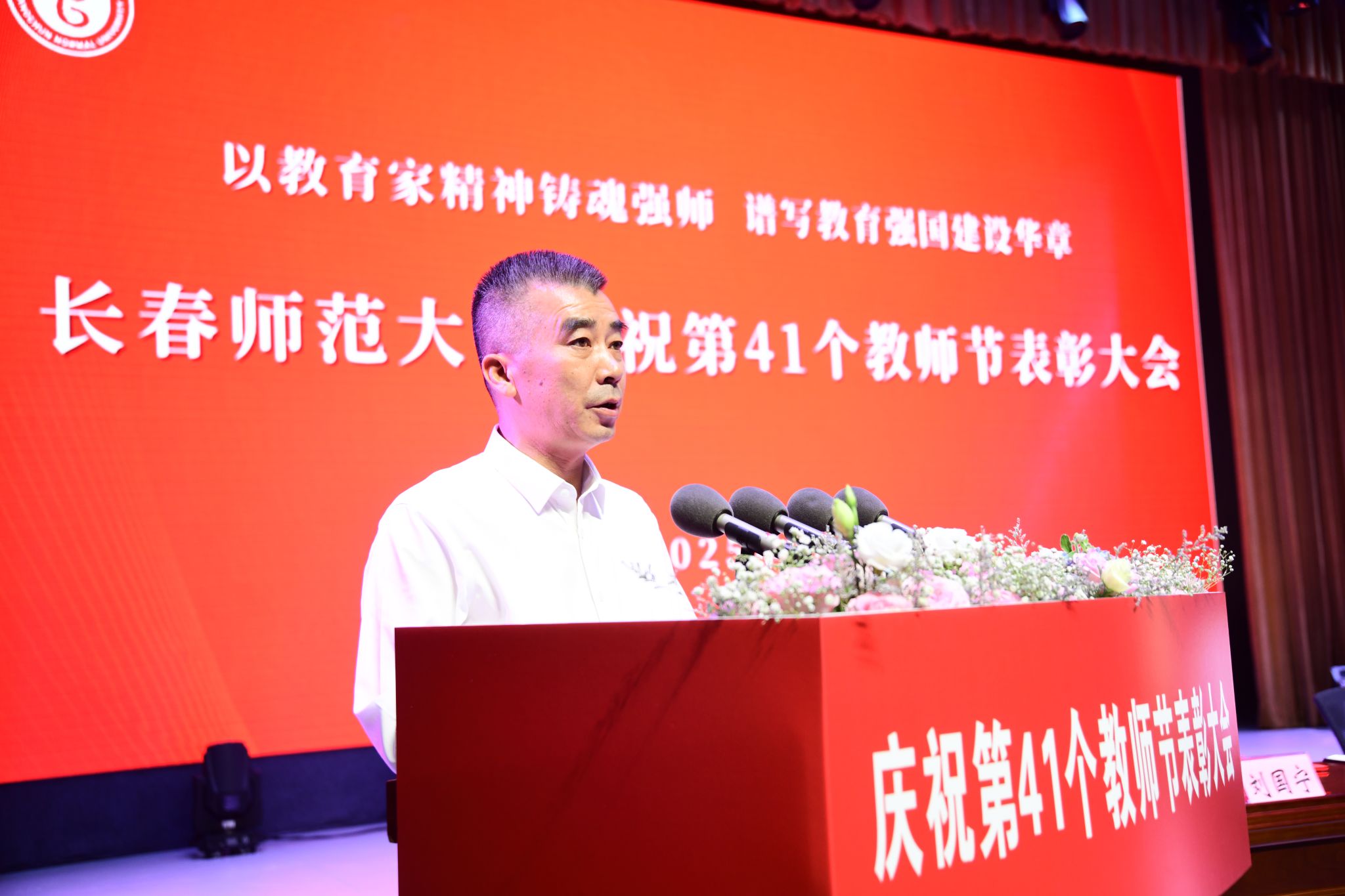 9月10日下午,学校在长师会堂举行庆祝第41个教师节表彰大会,隆重表彰学校在各自岗位上取得突出成绩、获得省级以上荣誉称号的先进个人和先进集体,弘扬尊师重教的光荣传统,强化榜样引领与精神感召,深入践行教育家精神,与全校躬耕在教育一线的教育工作者共庆节日。校领导刘多、胡德超、陈爱梅、张广翠、宫炳成、白娥出席大会,党委副书记刘国宁主持大会。
