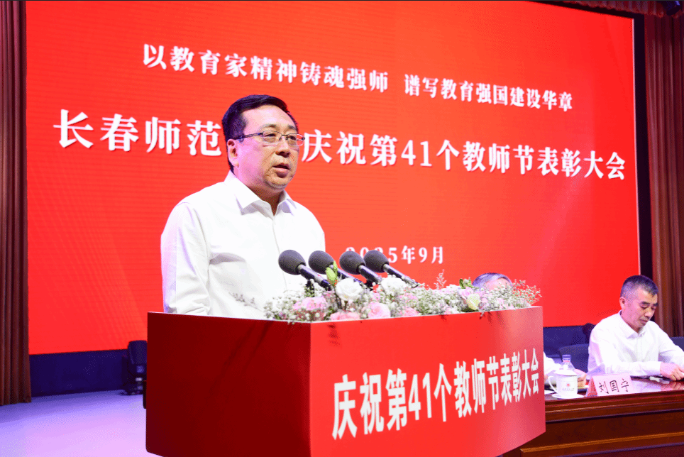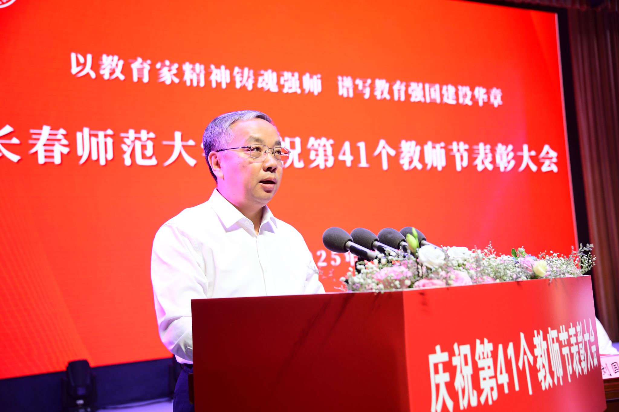 刘多强调,教育强国的壮丽事业,呼唤着我们以教育家精神为引领,在新征程上展现新作为。全体教师要做立德树人的“大先生”,以仁爱之心守护学生成长。贯彻“爱的教育”理念,把学生真正当作自己的孩子,做好他们的引路人,用爱心、耐心和责任心,为他们的青春梦想保驾护航,培养出一代又一代堪当民族复兴重任的时代新人。要做本领高强的“大学者”,以创新之勇回答时代命题。要主动拥抱变革,坚决打破壁垒,始终站立前沿,将最新的学术成果、最鲜活的行业动态融入课堂,让人才培养与时代同频共振。要做学校发展的“主人翁”,以赤诚之心共筑长师家园。将学校的发展视为自己的事业,心往一处想,劲往一处使,让团结奋斗、共创未来的主人翁精神,成为长师最动人的风尚。要做廉洁自律的“清醒人”,以高尚之德彰显师道尊严。常怀律己之心,永葆敬畏之念,共同守护好风清气正、书香致远的圣洁校园,让高尚师德成为长师最闪亮的品牌。