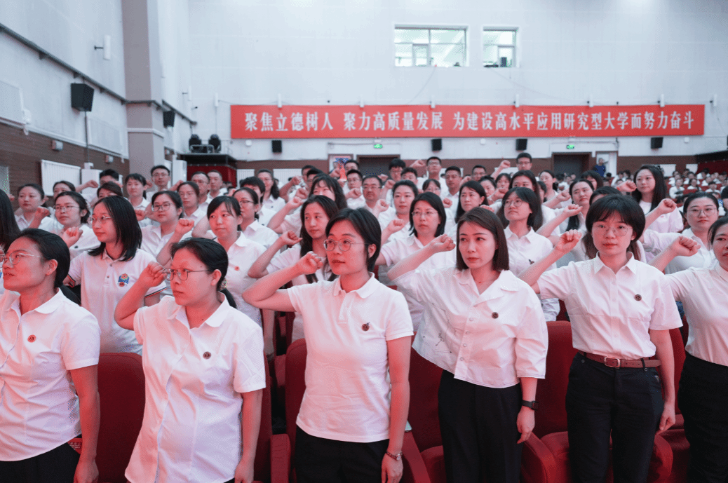 “我志愿成为一名人民教师,忠诚党的教育事业,遵守教育法律法规,履行教书育人职责,引领学生健康成长……”随着新进教师齐声宣誓,这份光荣,映照着强国志、报国情,在每一位教师心中掀起波澜。